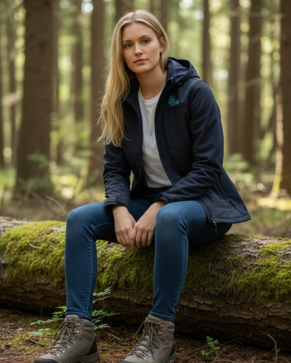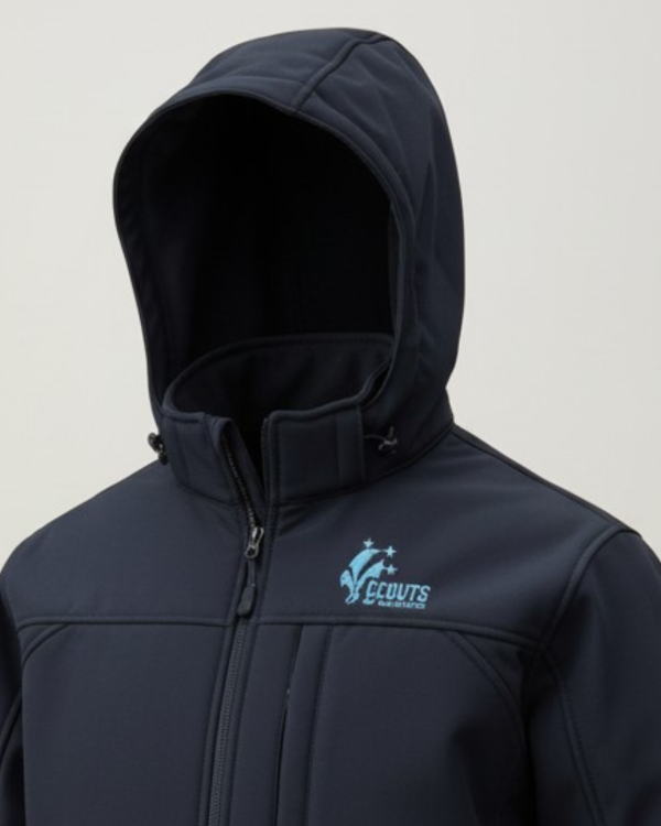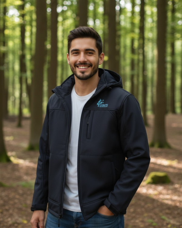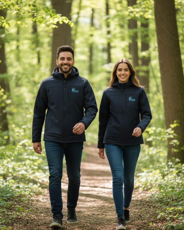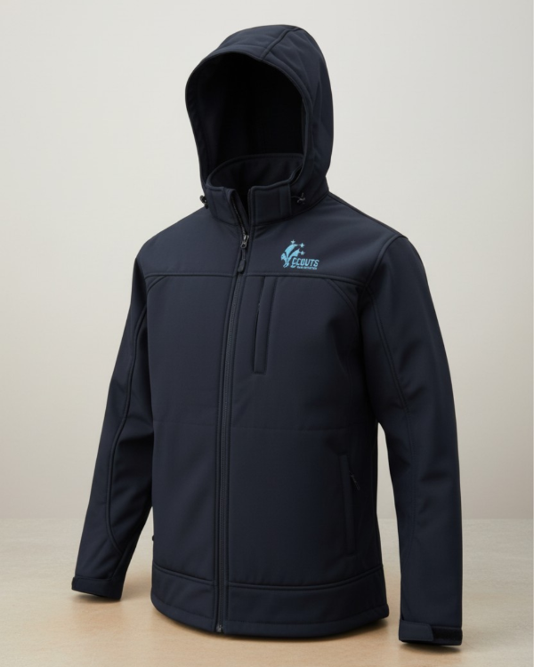 Campera Softshell (tela engomada). Impermeable. Con abrigo interior. Color azul con bordado frontal del logo asociativo.