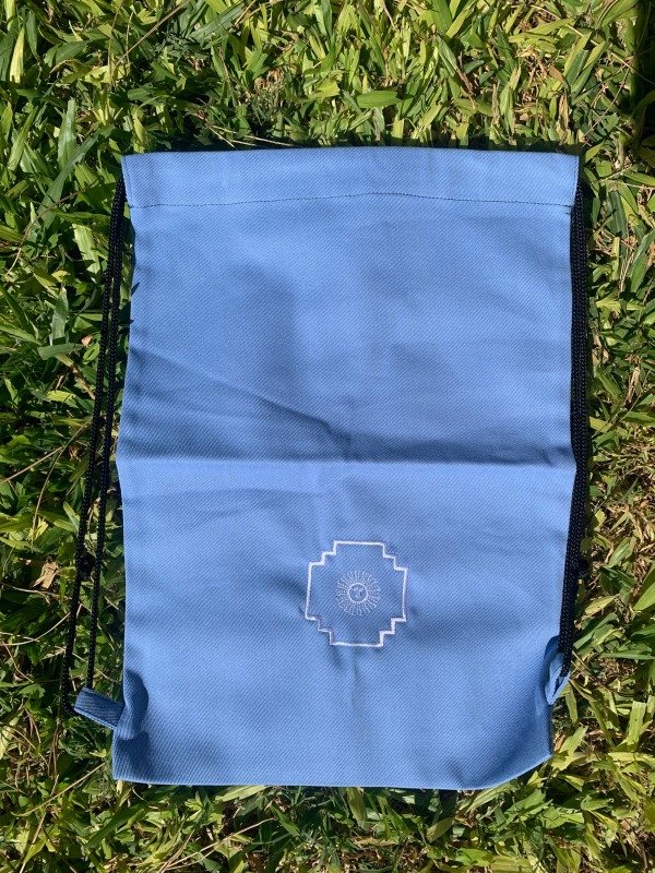 Bolsa Mochila en gabardina celeste con bordado temática Caminantes